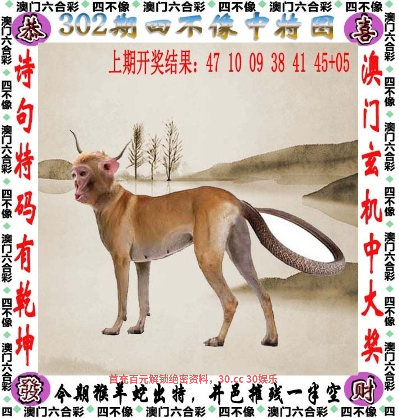 | 302期六肖 | 鼠龙羊鸡狗猴 | 開:猴22准 |